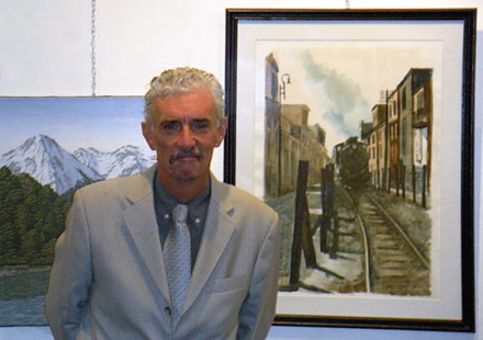 Dr Guillermo Julio Montero, Presidente de la Fundación Travesía, junto a la acuarela que recibió el Primer Premio.