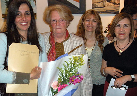 Entrega del Primer Premio a la Sra. Marcela Castro Estruch quien representara en la ceremonia al autor de la acuarela ganadora del Primer Premio, Sr. Horacio Luis Lotito.
