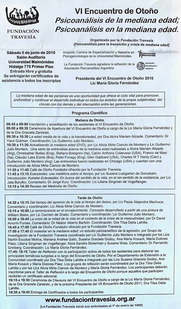 [48 individual clinical cases treated during 2010] - FT (GJM+AMC): [Book Publication] Para comprender la mediana edad (Understanding Midlife) [a book written without any technical words for an educated public with intellectual concerns], Entrevía Editorial, Buenos Aires