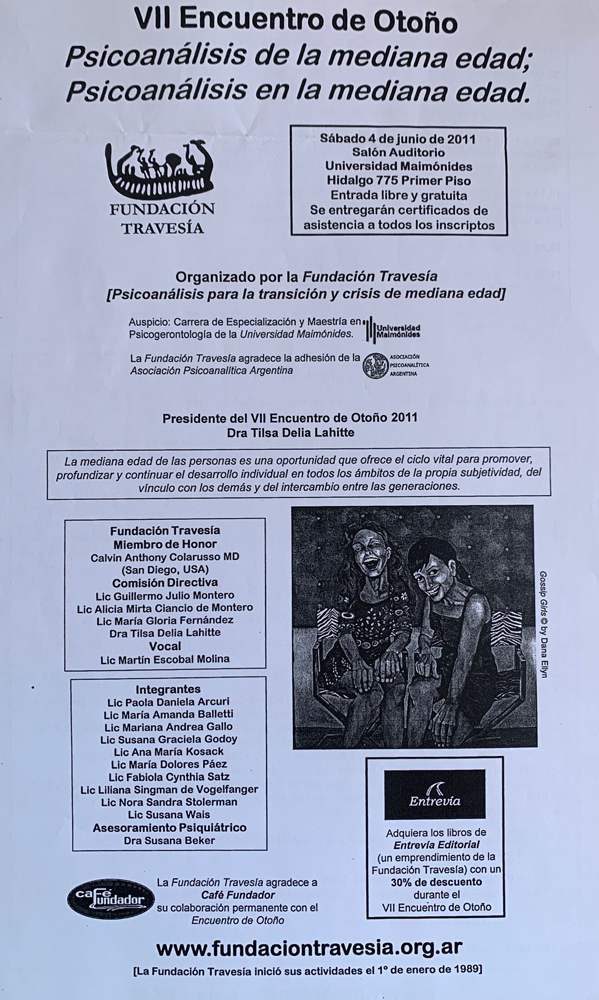 This color stands for those activities that promote the transmission of the psychoanalytic understanding of maturescence and middle age among young professionals, and among new generations of professionals linked to the psychological field, facilitating the identification and deepening with the series of postulates raised.