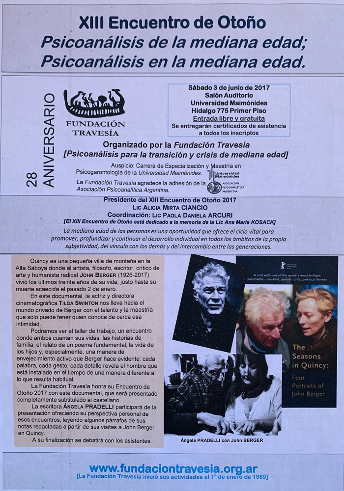 [51 individual clinical cases plus 5 couple cases treated during 2017] - FT: [Diffusion and Artistic Activity]Film Debate: A cycle of eight annual meetings (March-October) where a film is screened and discussed from the perspective of midlife and aging, coordinated by a member of FT